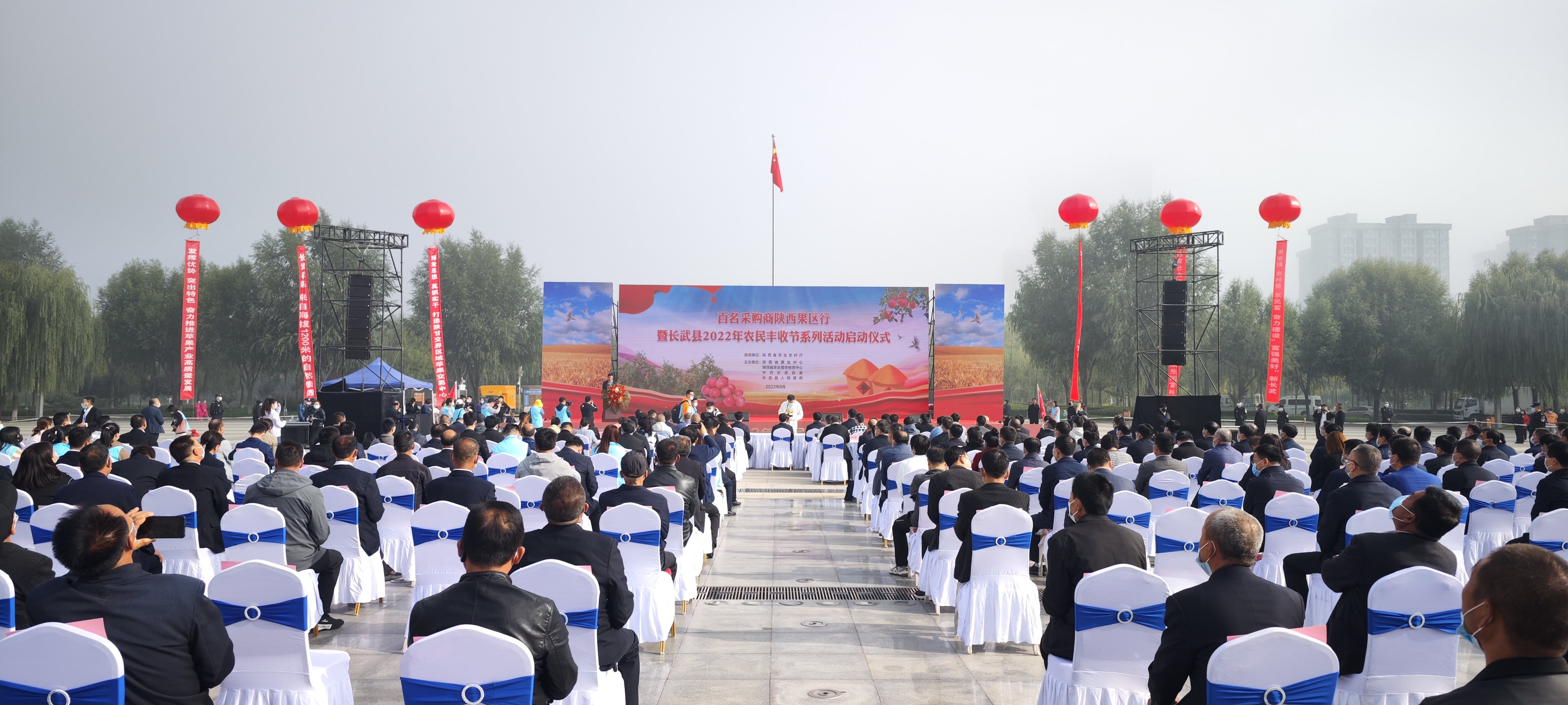 9月26日,百名采购商陕西果区行暨长武县2022年农民丰收节系列活动启动仪式在长武县人民广场举行。
