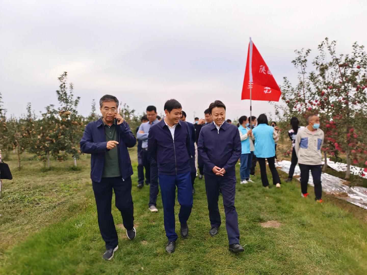 9️月26日上午,启动仪式结束后,一行人上午走进乾富祥、瑞杰、绿资农业基地/企业;下午走进天恩生态农业、长凌农业、高质高效苹果示范园。通过实地走访了解到:多年来,长武县持续招大引强、推广矮化密植、加大老园改造、狠抓品牌营销,形成了“生产有基地 营销有组织 流通有市场 出口有渠道”的完整产业链从而出现一大批现代果业园区落地成景,瑞雪、瑞阳、秦脆等为代表的高端新优品种。