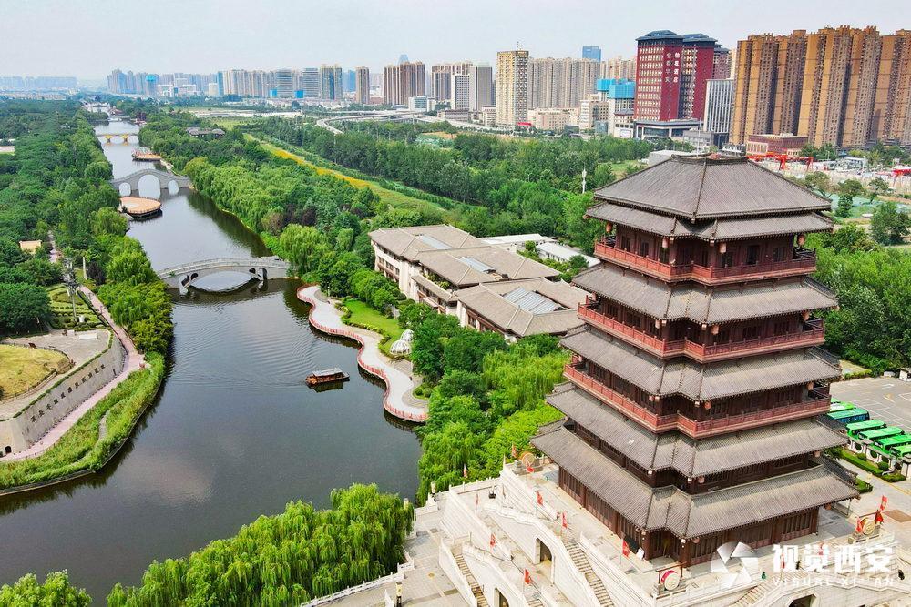 站在大风阁上俯瞰汉长安城遗址,西北方向绿色葱茏,满眼树木填满了遗址区,汉城湖恰如长安城的一角美丽边框,宛若一块“绿玛瑙”镶嵌在长乐宫不远的东南方向。