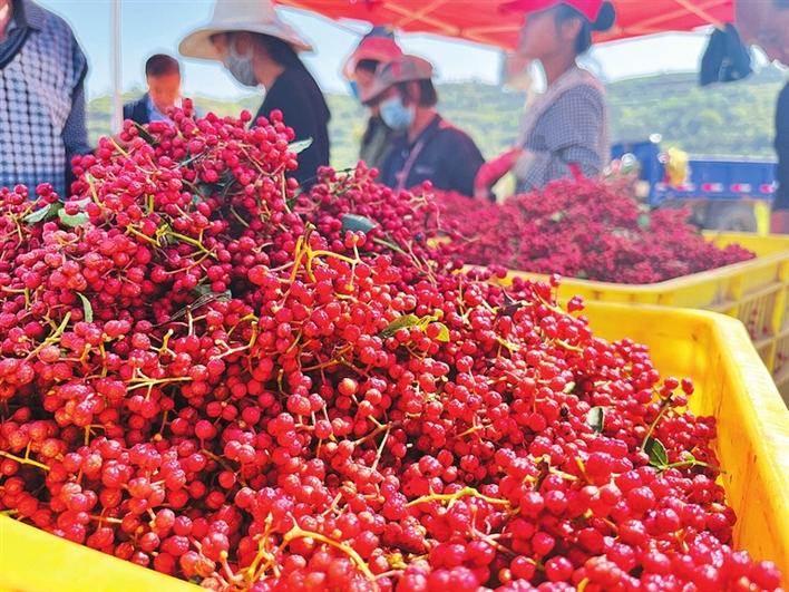 9月5日,在彬州市永乐镇三杰农民专业合作联合社的花椒园里,一股麻香味扑鼻而来,被誉为“花椒之王”的大红袍花椒以骄人的姿态生长在坡地,椒农们抢抓晴好天气采摘,鲜红的果实映红了群众增收致富的好日子。