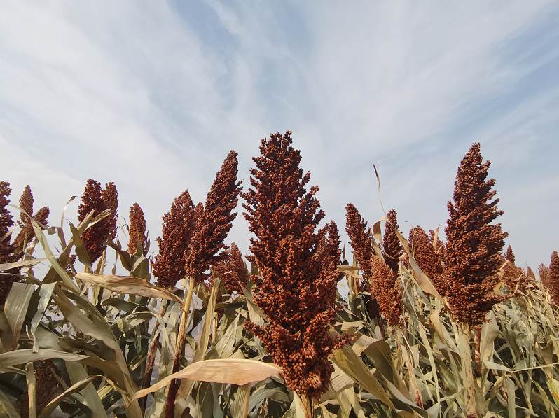 据了解,近两年来,绥德县引进晋杂21号新品种高粱,并进行推广,一粒种子能长出1-3株高粱穗,具有多抗高产优质的特点。绥德县农业农村局副局长杨崎筠介绍说:“现在高粱价格每斤能卖到1.6元左右,绥德今年共计种植红高粱4.6万亩,预计产值可达1.5亿元。”