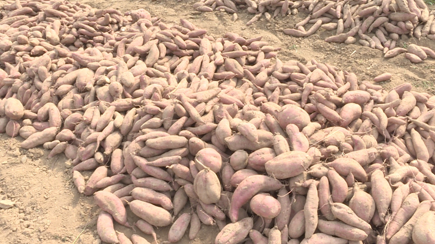 对于济阳村村民来说,村里的红薯喜获丰收,成为当地农民增收致富的希望的田野。刚挖出来的红薯横七竖八地躺在土地上,在阳光照耀下,映照着庄稼人的脸庞,形成一道独特的风景。
