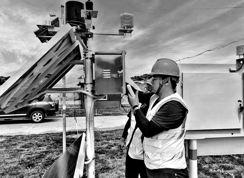 工作人员在数智园区安装调试设备