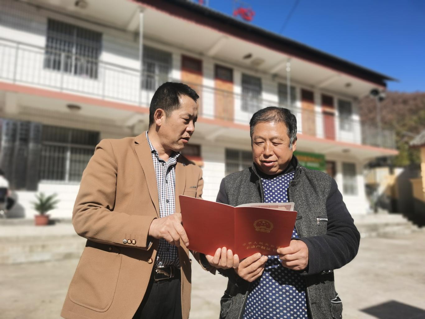 办证过程中,林权登记发证职能已由林业行政部门整体划转县自然资源局,为妥善解决这一历史遗留问题,驻村工作队争取省人社厅挂职丹凤县副县长的支持,一道听取林权权籍测绘公司、镇、村、组等多方意见,帮助协调相关职能部门打通堵点、争取资金,历经8个多月协调资金17.5万元,给付第三方测绘公司林权权籍坐标定位费用后,达到县不动产登记中心登记要求所需关键资料。至此,为阳阴村解开了长达13年的“乱麻疙瘩”。当从丹凤县不动产登记中心工作人员手里接过296户309本《不动产产权证书》(林权)时,武关镇阳阴村党总支书记李敏开心地说:“盼了13年,现在发展菌业增收的问题终于从根子上解决了,省人社厅帮扶我们村真好,这下咱们回去能给群众一个满意的交代了。”村民黄方贵拿到第一本证书后高兴地说:“领到林权不动产证,我家的产业补贴、林木间伐手续就可以正常办理了,就可以更好地做大做强香菇、天麻产业,过好日子了。”